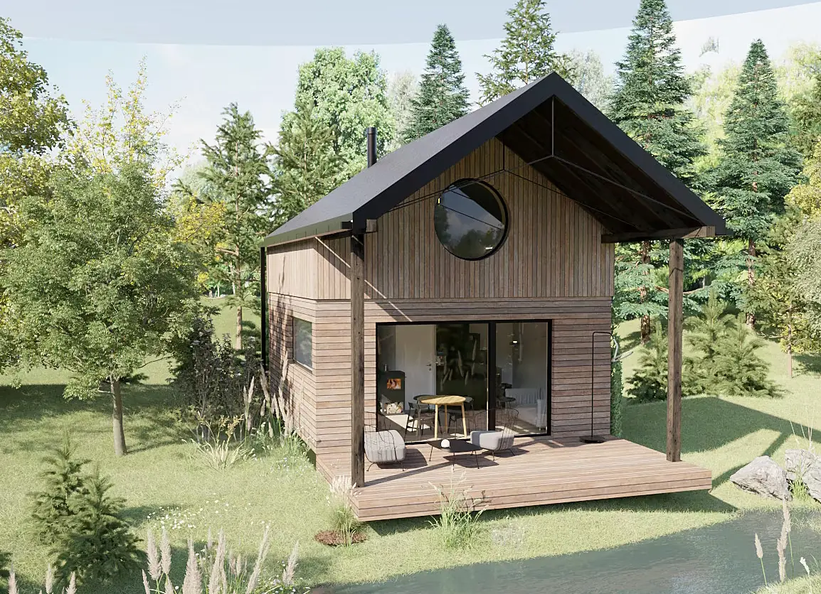 Náš klient toužil po jednoduchém konceptu minimalistické chaty, která by měla tradiční typologii, ale ve které bychom použili moderní prvky, jako jsou velká prosklená okna nebo dřevěný obklad.