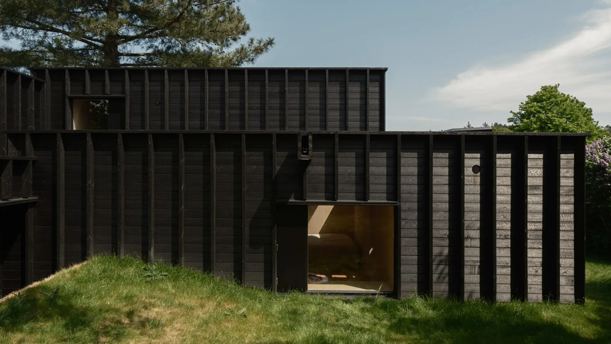 Přístavba obložená opáleným borovicovým dřevem skrývá malý dvůr uprostřed dánského Domu se skrytým atriem, který navrhlo švédské architektonické studio Förstberg Ling.