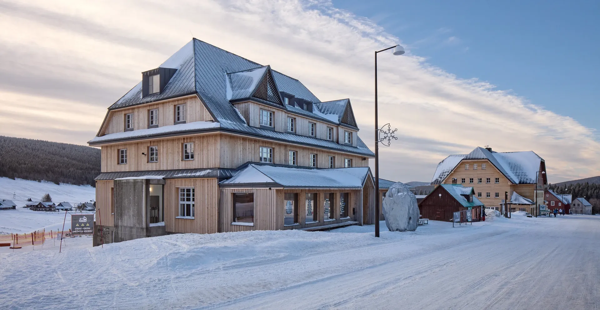 Pomezní Boudy v Horní Malé Úpě zatím žádná nová výstavba nezkazila. Na kvalitu architektury se tu dbá a rekonstrukce sto let staré chaty Hořec není výjimkou.