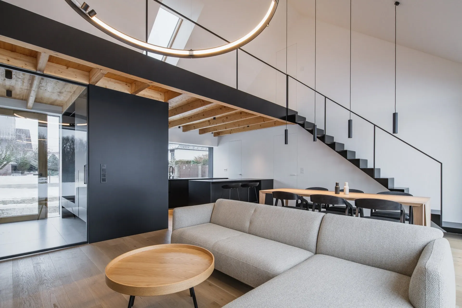 Byla použita foukaná celulózová izolace. Díky tomu je střecha lehká a bylo možné pracovat s dřevěnými stropními trámy místo ocelových.