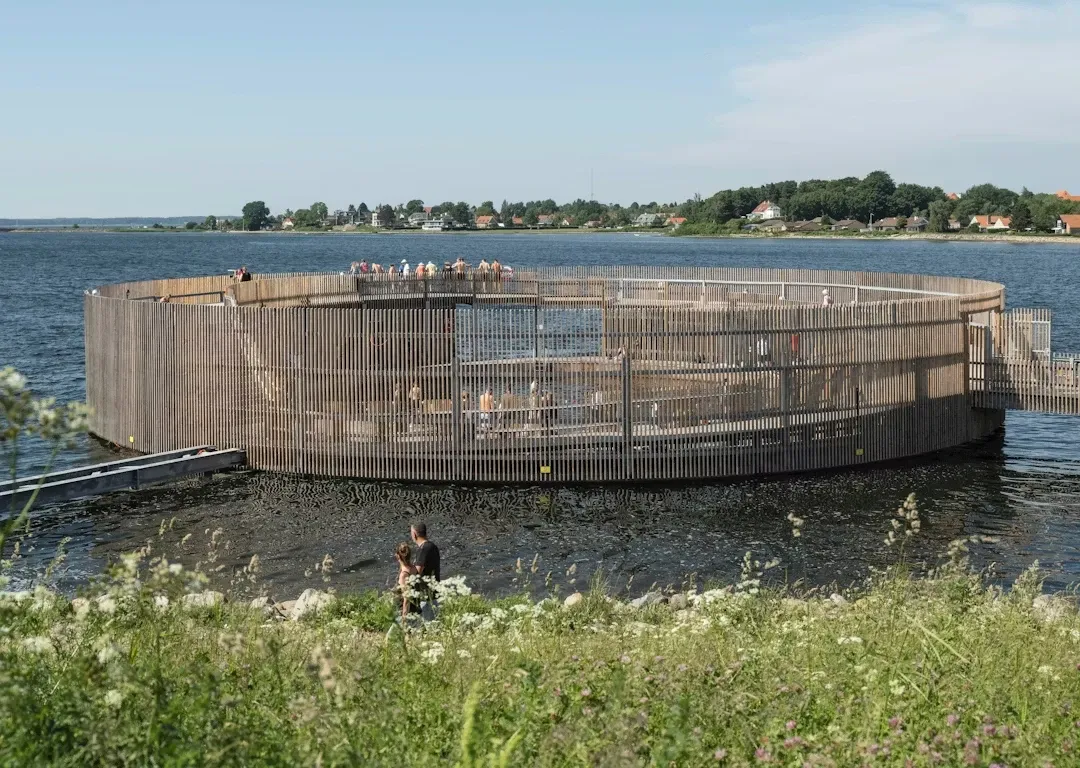 Dřevěná konstrukce přístavních lázní bude elegantně stárnout a dodá jim jemný stříbrný odstín.