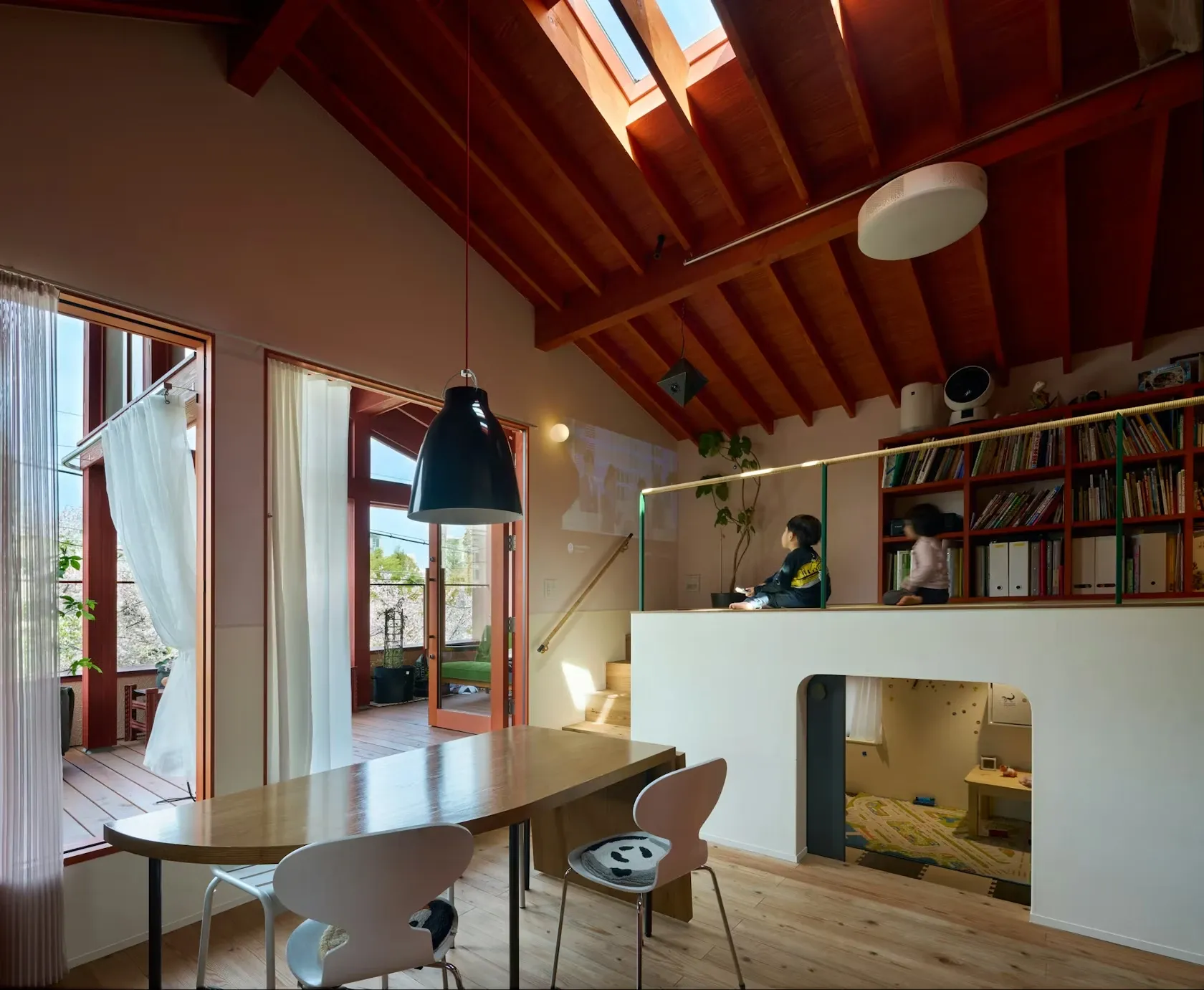 Mezi původní požadavky klienta patřila červená trojúhelníková střecha, velký balkon s výhledem na park před pozemkem, kde by mohli pěstovat rostliny, a povrchové úpravy s použitím přírodních materiálů.