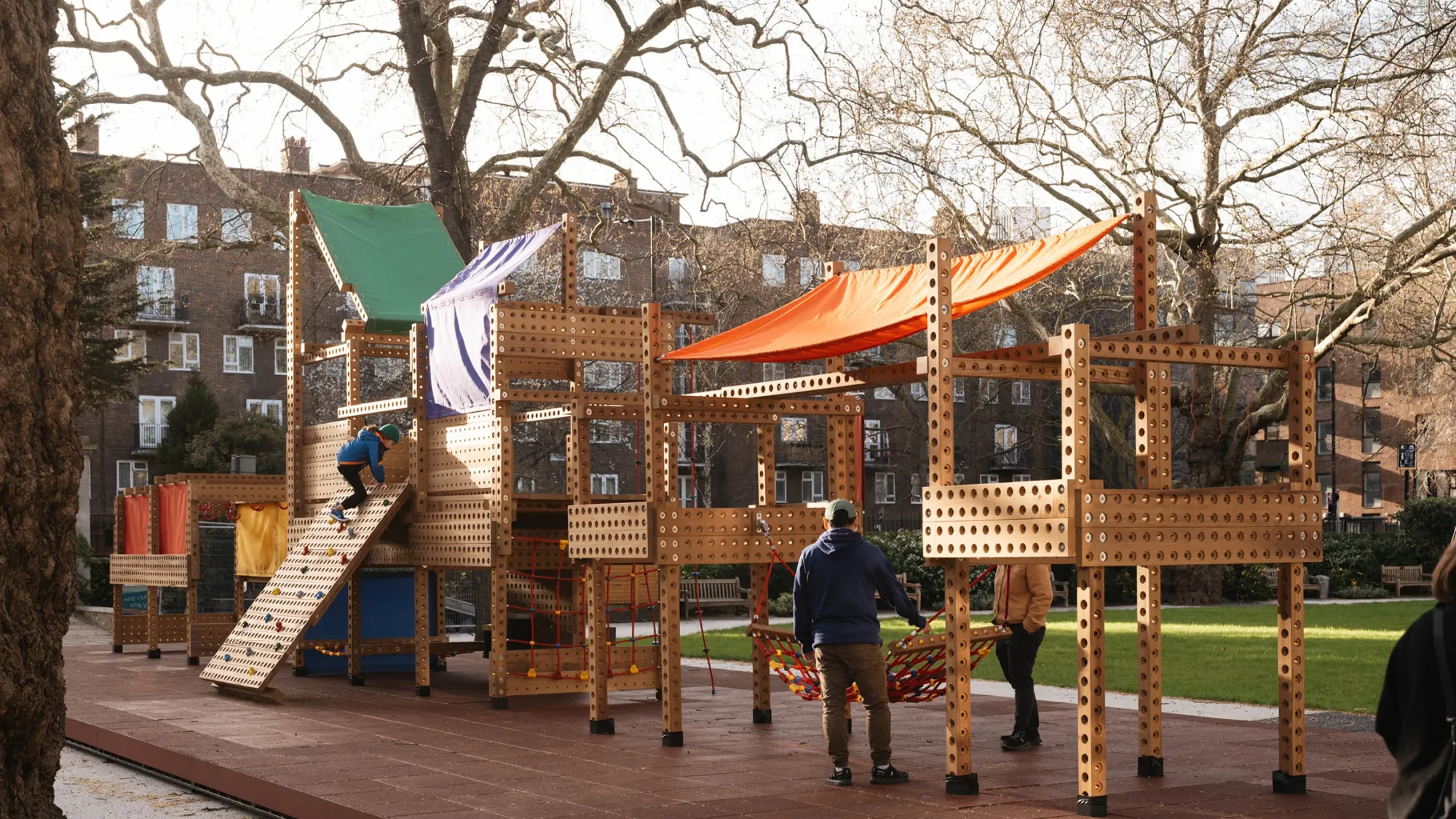 Britská charitativní organizace Playrise a architektonické studio OMMX navrhly modulární hřiště z plochých skládaček , jehož cílem je obnovit právo dětí na hraní v uprchlických táborech a zónách postižených katastrofami.