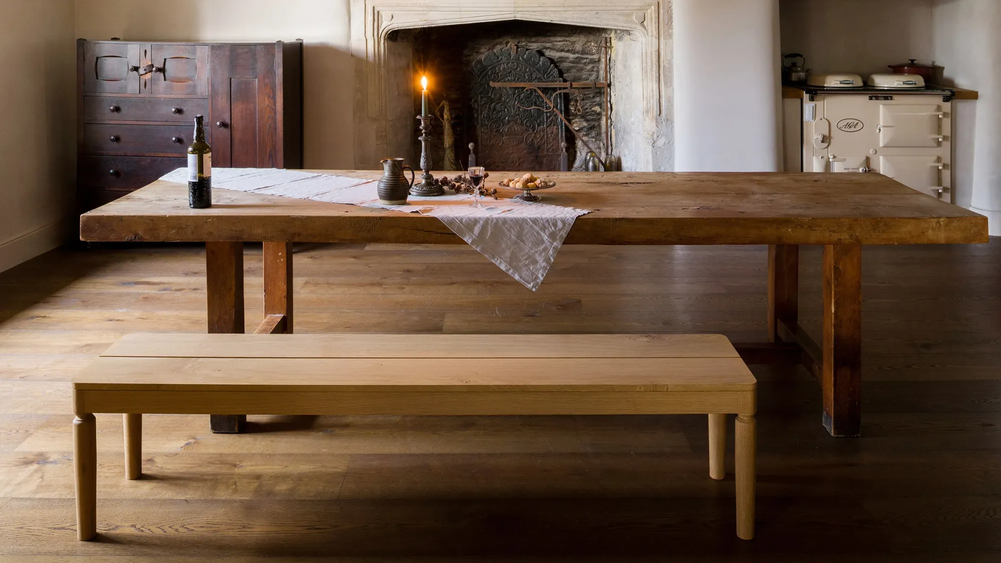 Britská značka kuchyní Inglis Hall si dala za cíl vytvořit typickou kuchyňskou lavici s Riftem, ručně vyráběným sedákem z masivního dřeva.